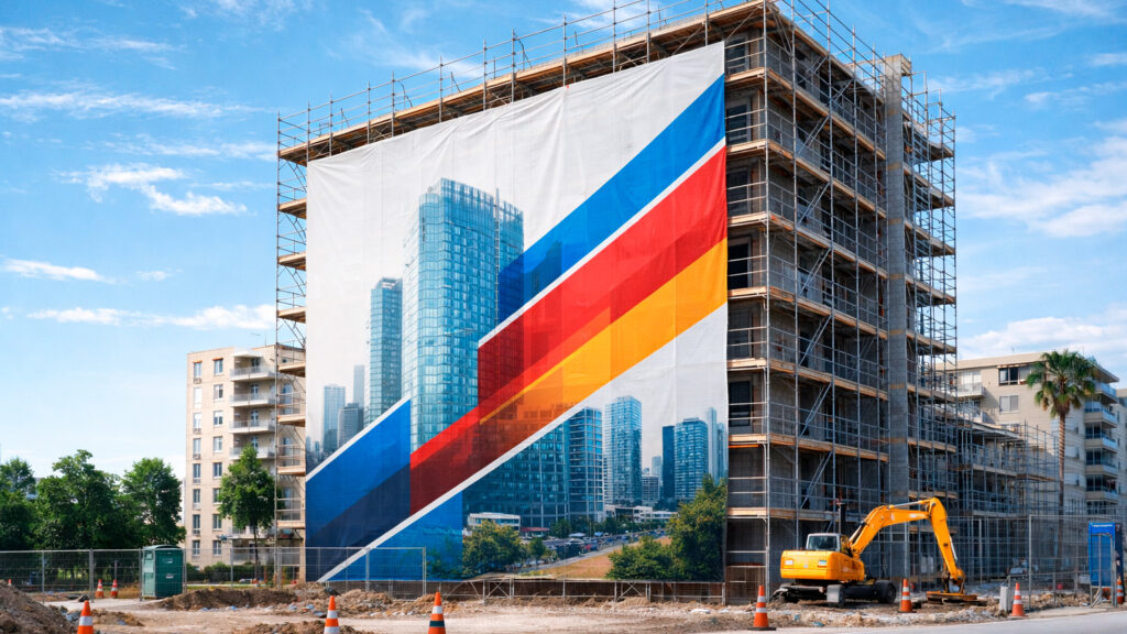 Premium mesh banners & façade coverings engineered for construction sites, scaffolding and large-scale outdoor visibility.